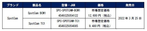 株式会社アユート(東京都文京区)は、この度、台湾・ネットワークカメラメーカー「SpotCam(スポットカム)」の正規代理店として、製品のお取り扱いを開始することをお知らせいたします。監視カメラ「SpotCam BCW1」「SpotCam TC1」を2022年3月25日(金)に発売します。弊社直販サイト「アキハバラe市場」および国内販売店にてお取り扱いいたします