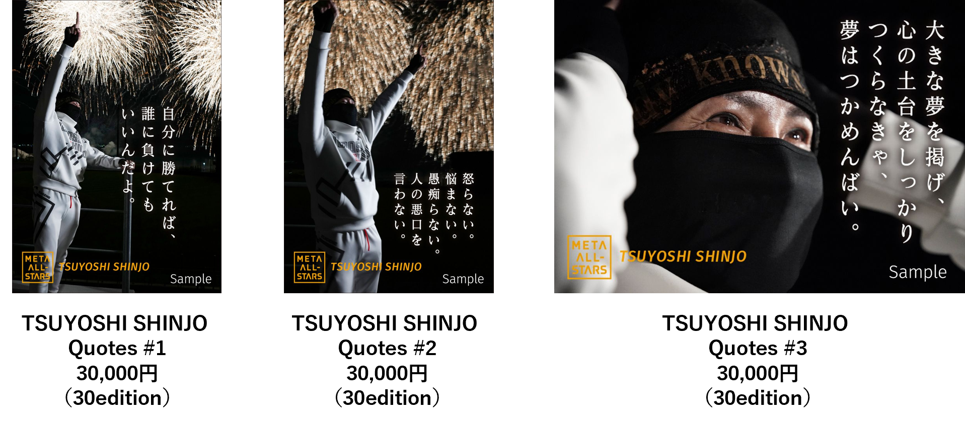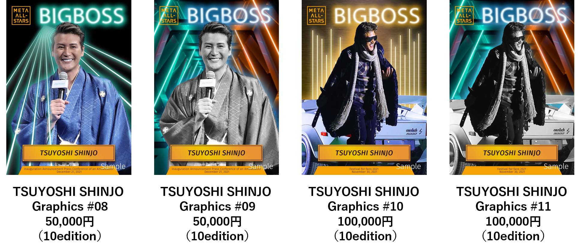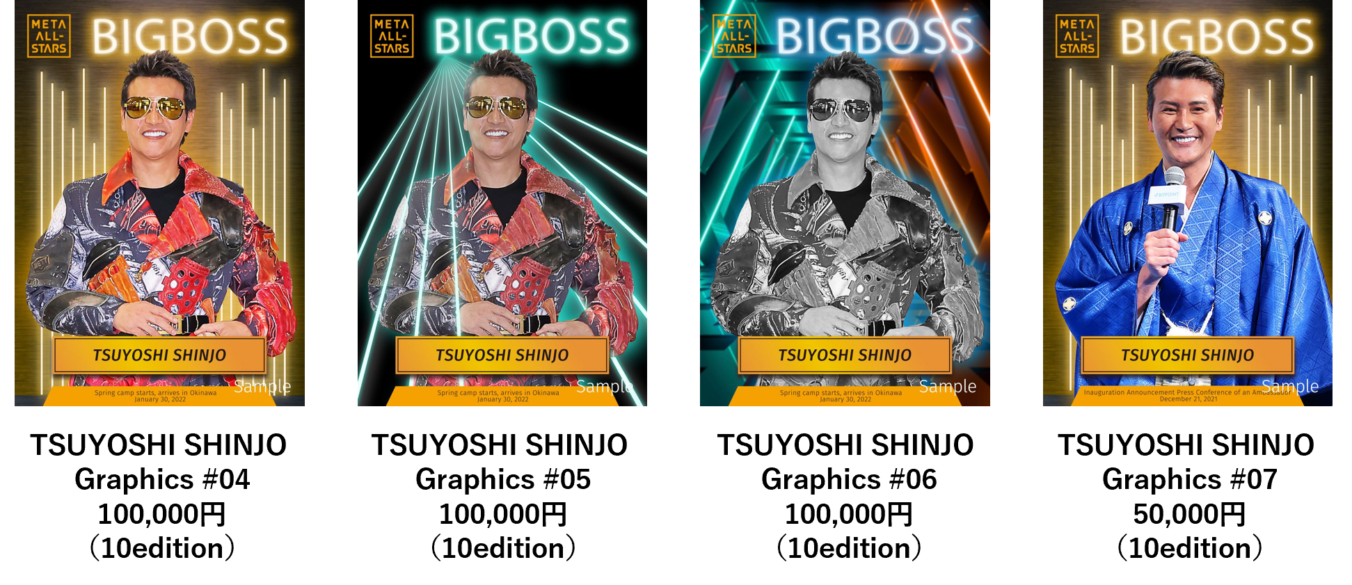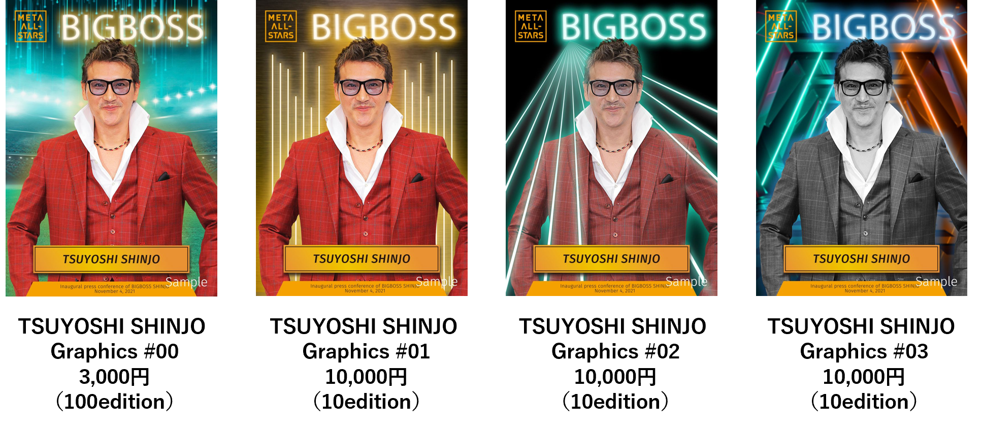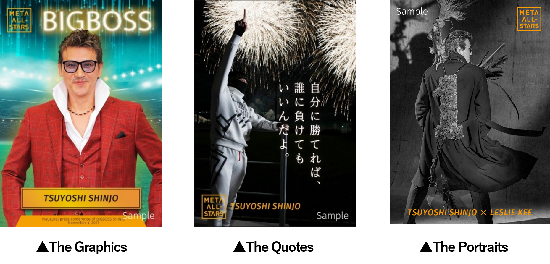 第一弾BIGBOSS新庄剛志NFTは、3種(The Graphics, The Quotes, The Portraits)を販売。