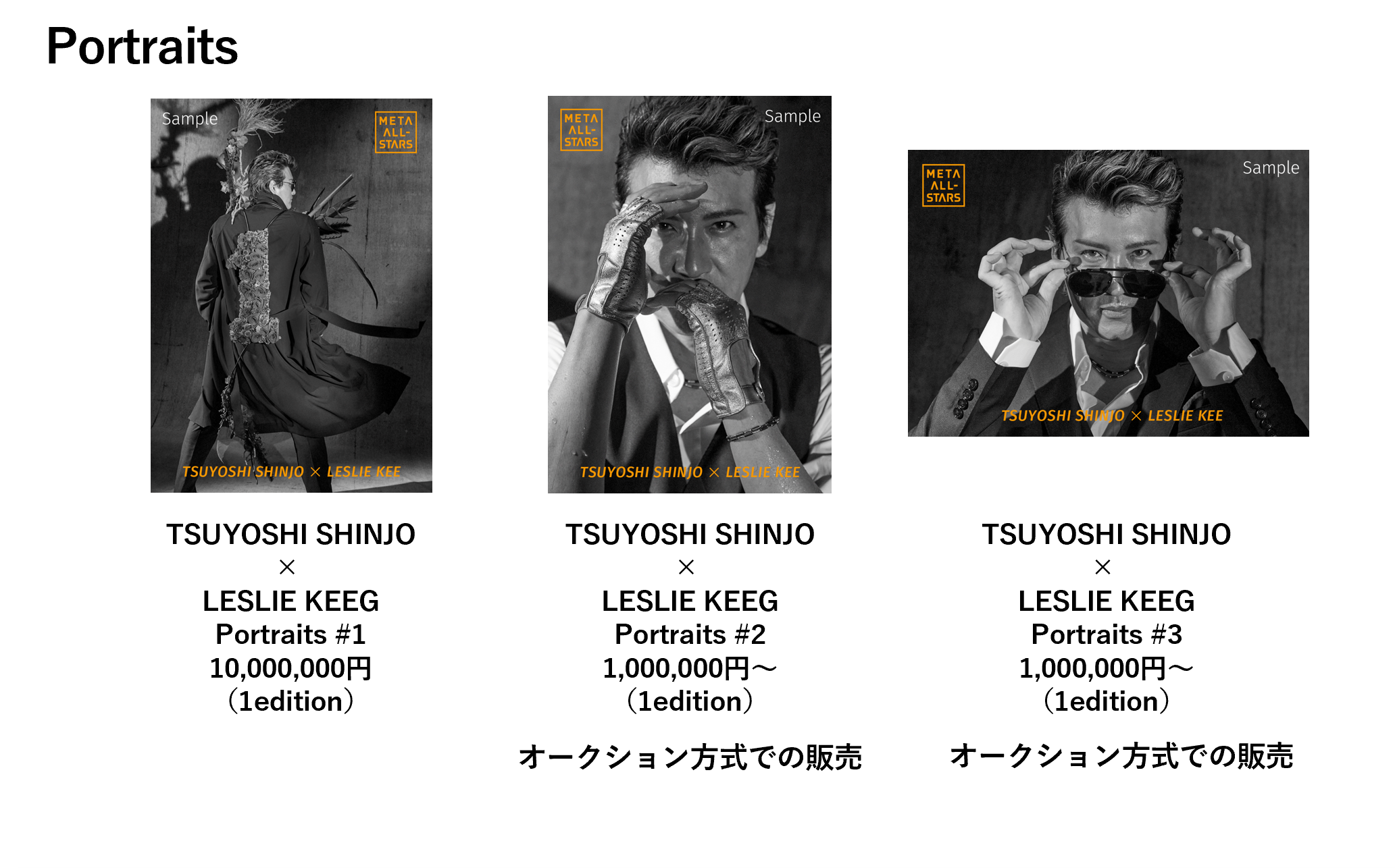 また、第一弾販売商品のThe Portraitsとして、BIGBOSS新庄剛志さんと世界的写真家レスリー・キーさんのスペシャルコラボシリーズ商品を販売いたします。2022年3月22日イベント内において「記者会見のステージ上でBIGBOSS新庄剛志さんを生で撮影し、そのままNFTとして販売」するという世界初の試みにチャレンジしております。レスリー・キーさんとは、今後も、META ALL-STARSスペシャルフォトグラファーとして、様々なコラボをしていく予定です。