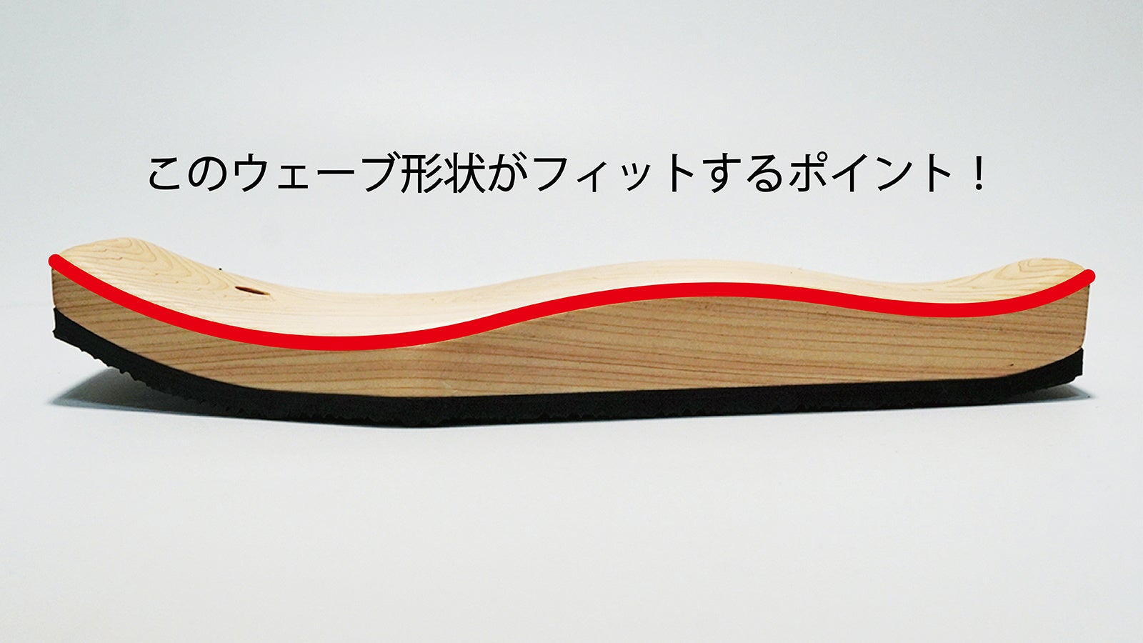 このウェーブ形状は、時代を超えて連綿とつながってきた下駄作りの技術と、現代のデザインが融合し生み出されました。