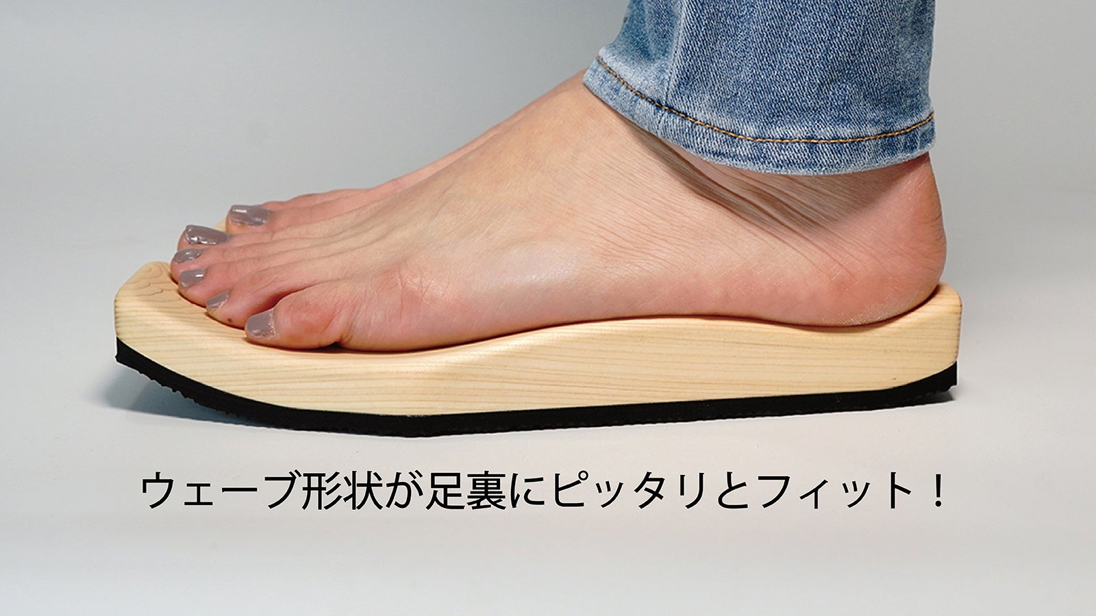 何度も試作を重ね、人の足裏にピッタリ添う形状になっているので、実際に履いてみると、桧で出来ているはずなのにクッション性を感じるほどです。