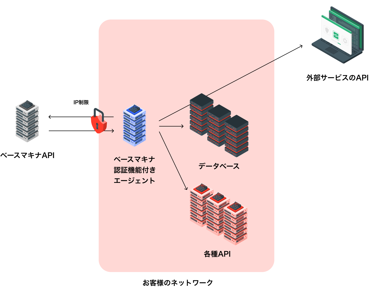 ベースマキナはお客様の社内データベースやAPIにアクセスするプロダクトです。