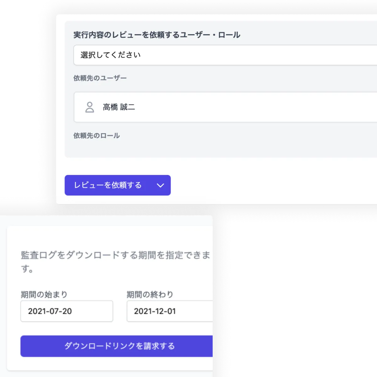 承認フローを組み込んで事前確認の設定をしたり、万が一の事後確認に備えた監査ログの記録を自動で行います。