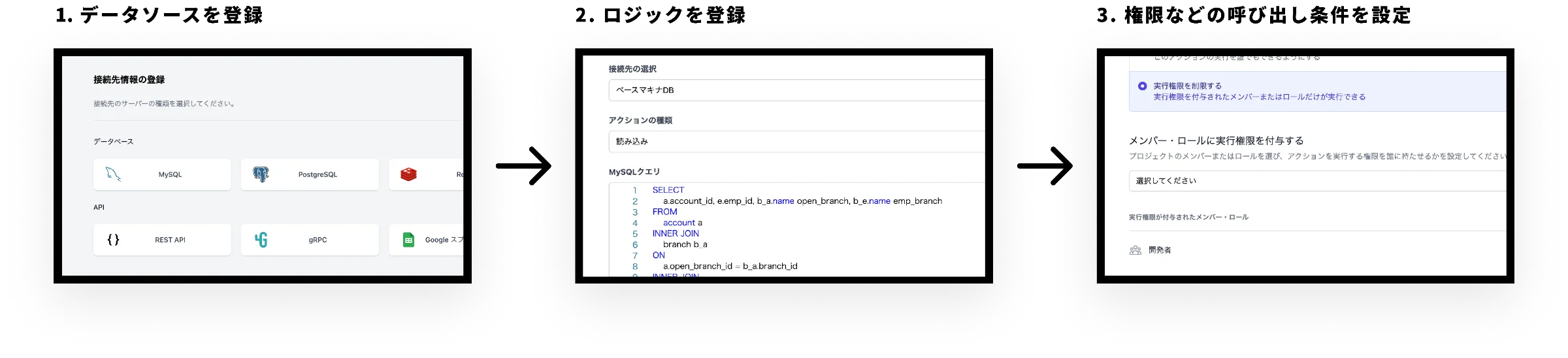必要なのはSQLやAPI呼び出しの登録だけ。