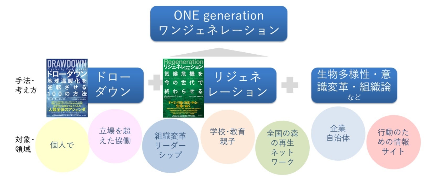 今回、後述する「Regeneration リジェネレーション 再生 気候危機を今の世代で終わらせる」日本語版の出版にも関わり、その活動を多方面に展開し、より機動的に発展させるため、一般社団法人ワンジェネレーションを設立しました。アドバイザーには、2冊の著者であり、プロジェクト創始者ポール・ホーケン氏が就任します。