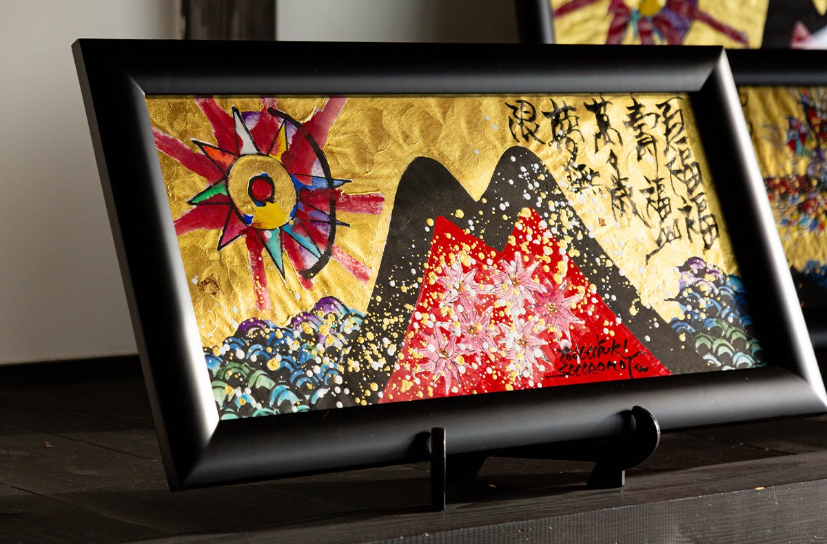 その基礎となり縁起物と言われる赤富士を用いて、色鮮やかに、華やかに描かれております。