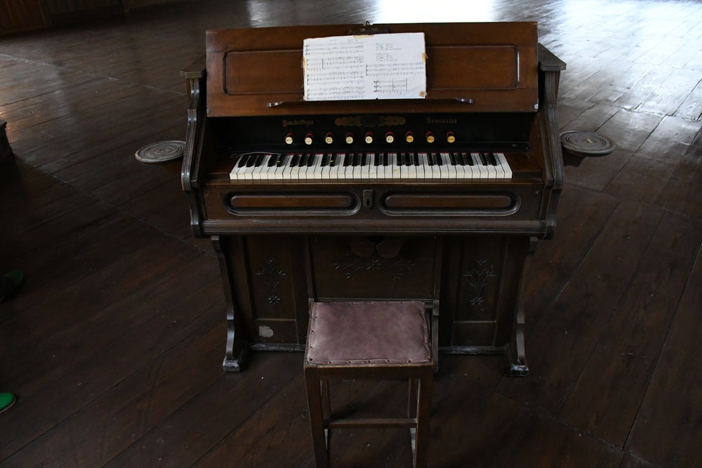また、特殊メガネをかけると、3Dの映像などがメガネの視界の中に広がります。吉岡銅山跡の様子を再現したCG映像を360度見ることができるほか、仮想の鍵盤を弾くと百年オルガンの音色を奏でることもできます。