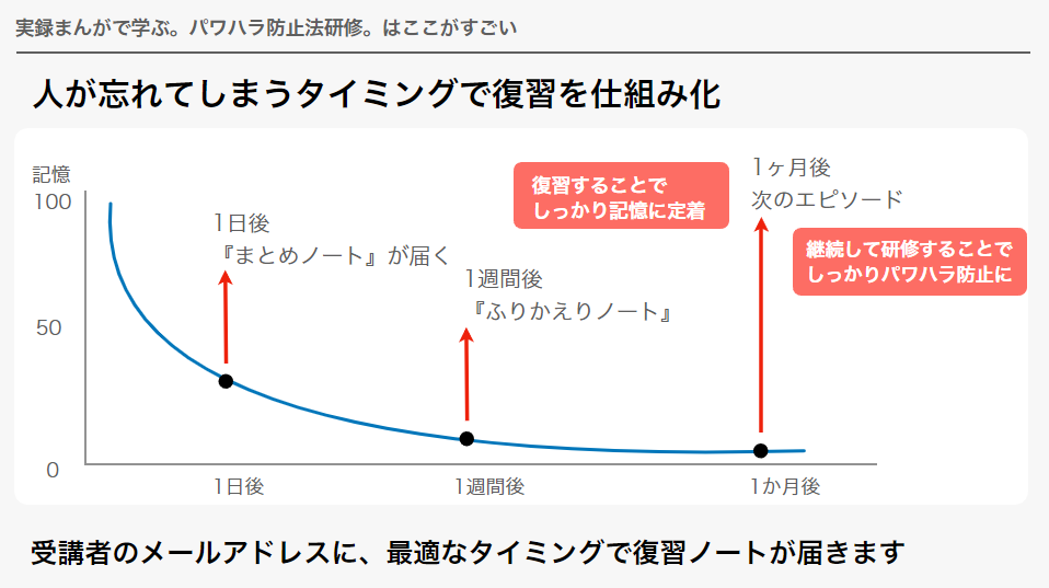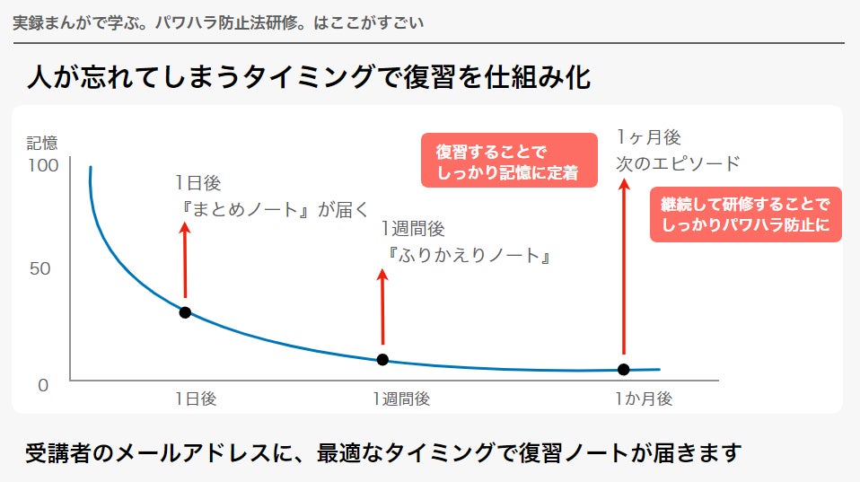5.教育効果を高めるため、1日後、1週間後に復習ノートが届き忘却防止ができる