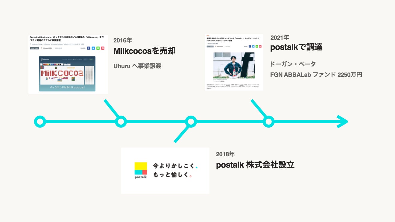 2018年5月に創業。『今よりかしこく、もっと愉しく。』をミッションに、毎日をもっと楽しくする、知的生産のツールを提供しています。2017年にカードを貼り合い、並べ替える「postalk」ベータ版をリリース。2021年にドーガン・ベータ、FGN ABBALabファンドから資金調達を実施し、2021年12月に正式版をリリースしました。