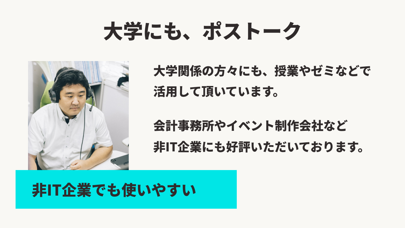IT業界だけでなく、会計事務所などの非IT企業から大学まで、幅広く使われています。