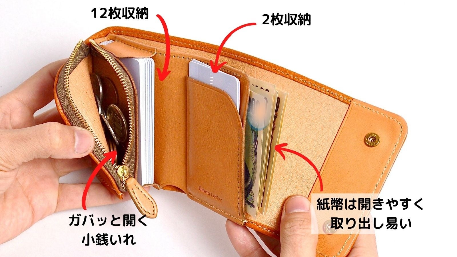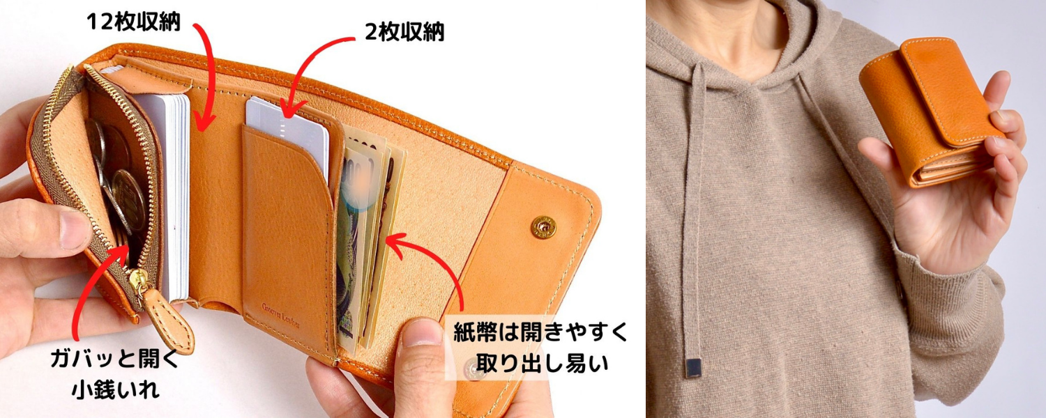 1番の特徴は収納力、手のひらに収まる小ささでカードが14枚収納されます。