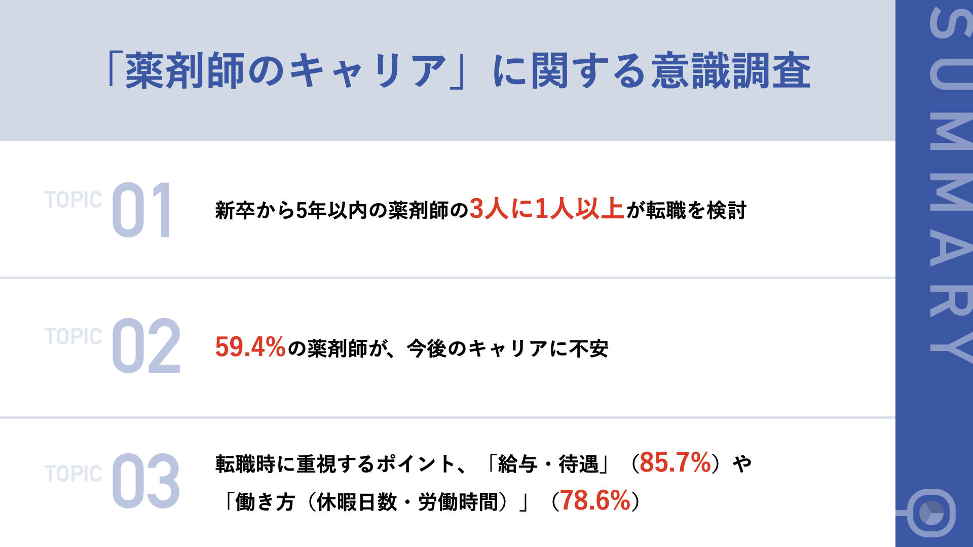 - 59.4%の薬剤師が、今後のキャリアに不安