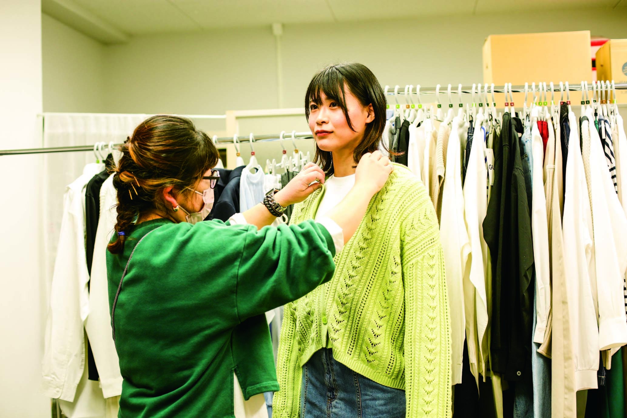 また、撮影当日には、GUスタッフに衣装の着こなし方などを教えて頂き、普段とは違う印象に戸惑いながらも、ファッションを楽しむ姿が見受けられました。学生が楽しく企画に取り組めたことが何よりの成果でした。