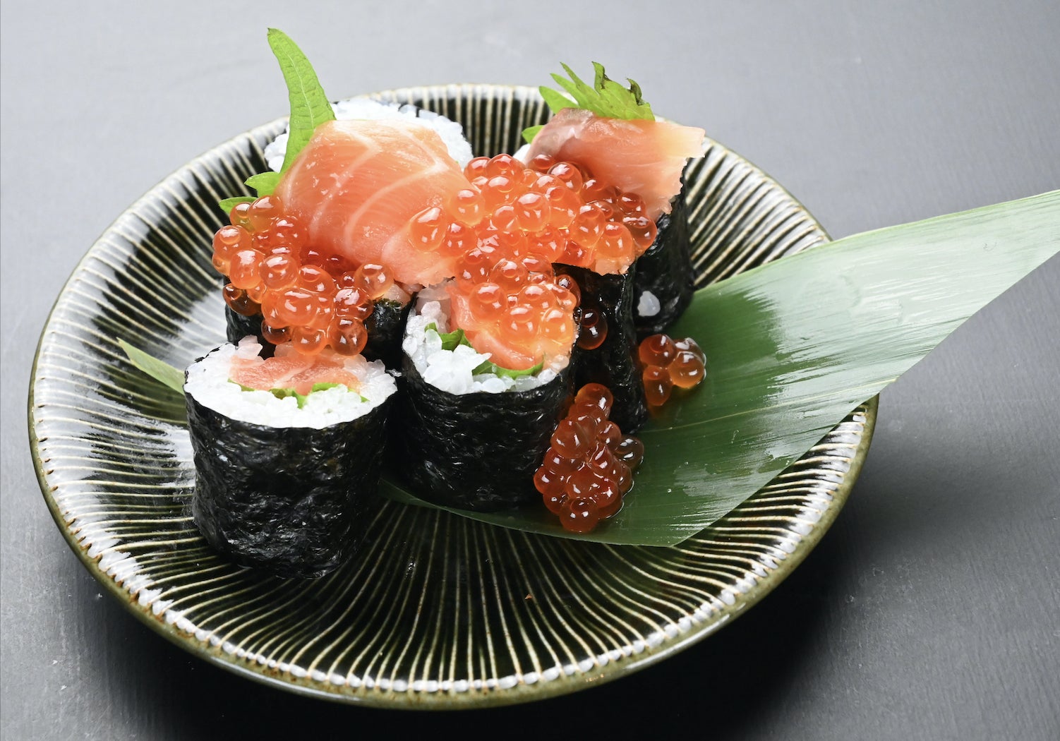 脂の乗ったサーモンといくらの相性は抜群で、旨味がつまった贅沢なお寿司です。