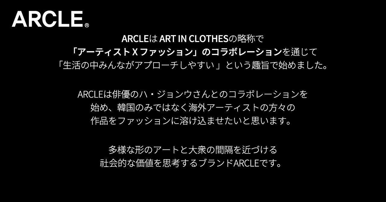 ARCLEは、「ART IN CLOTHES」の略で、アートとファッションが共存するあたらしいブランドを展開している。絵を描くアーティスト、多様な形の多様な形態の芸術により親しみを持ってアプローチし、芸術と大衆の間を縮める社会的な価値を目指している。