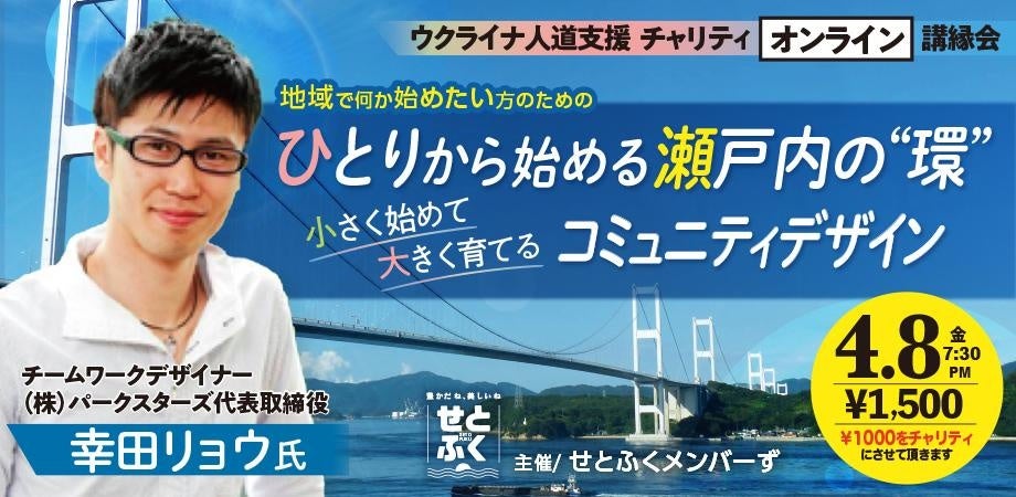感染症などの流行により、自由に移動できない今だからこそ故郷や、住んでいる地域のために何かしたいと考える人の声を多く聞くようになりました。そこで、私たち瀬戸内を愛するラジオパーソナリティの集まり「せとふくメンバーず」が、瀬戸内から日本を元気にするという活動の一環として、地域コミュニティ創りの基本を学ぶオンライン講縁会を開催いたします。 ※講演会でご縁を繋いでいってほしいという思いを込めて、講縁会と記載しています。