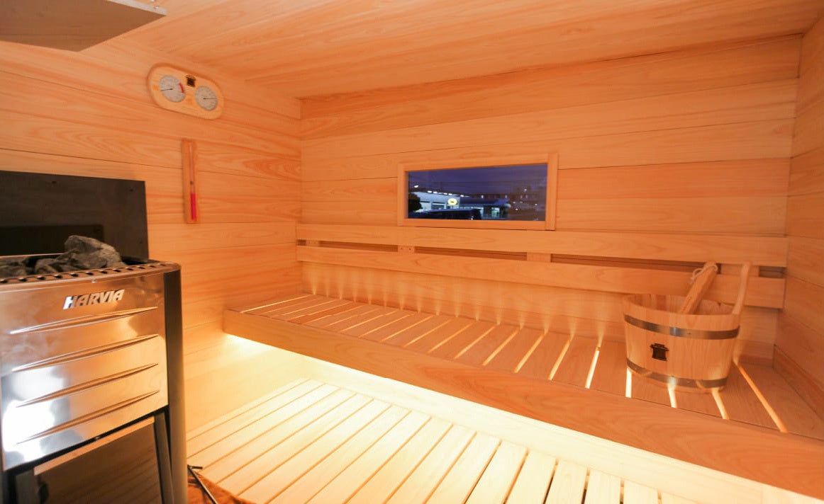 サウナの主役であるストーブは、最大出力16.5kWとハイパワーのHARVIA M3を採用。