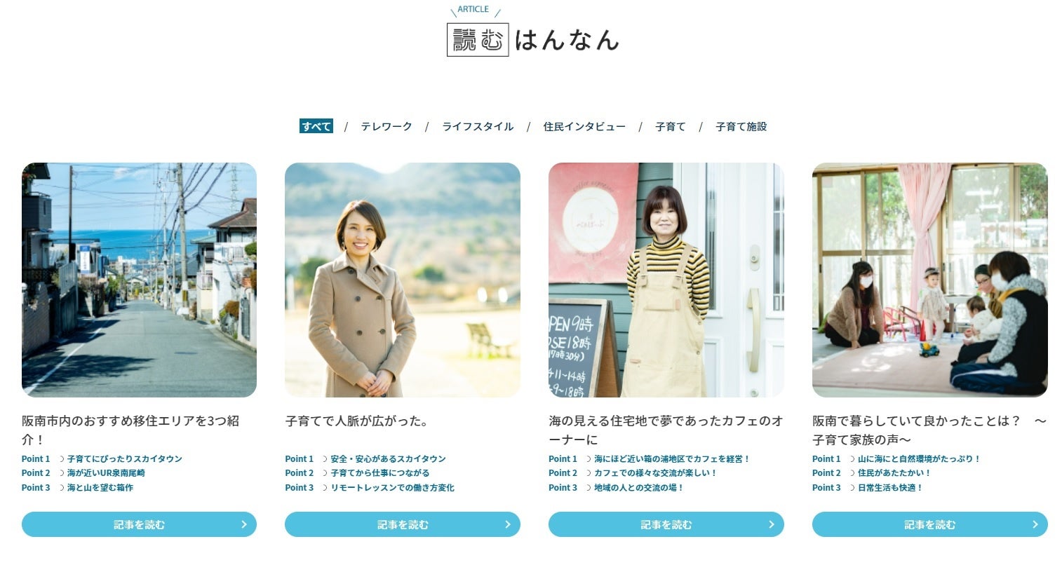 子育て・コミュニティおよびライフスタイルの側面について、実際に阪南市に住んでいる方の生の声を聞くことができます。