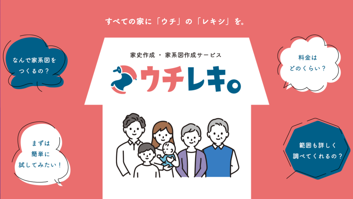 「望んだすべての人が自分の家史(かし)を知ることができるように」をモットーとした家史・家系調査サービス「ウチレキ。」サービス開始。「自分のルーツ探し」に。