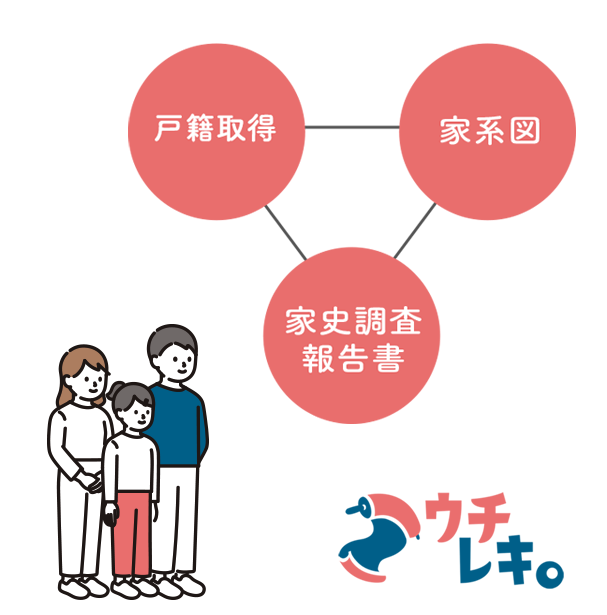 ウチレキ。は、一般の個人の方が「我が家のルーツ」を知ることができる「家史作成・家系図作成サービス」です。