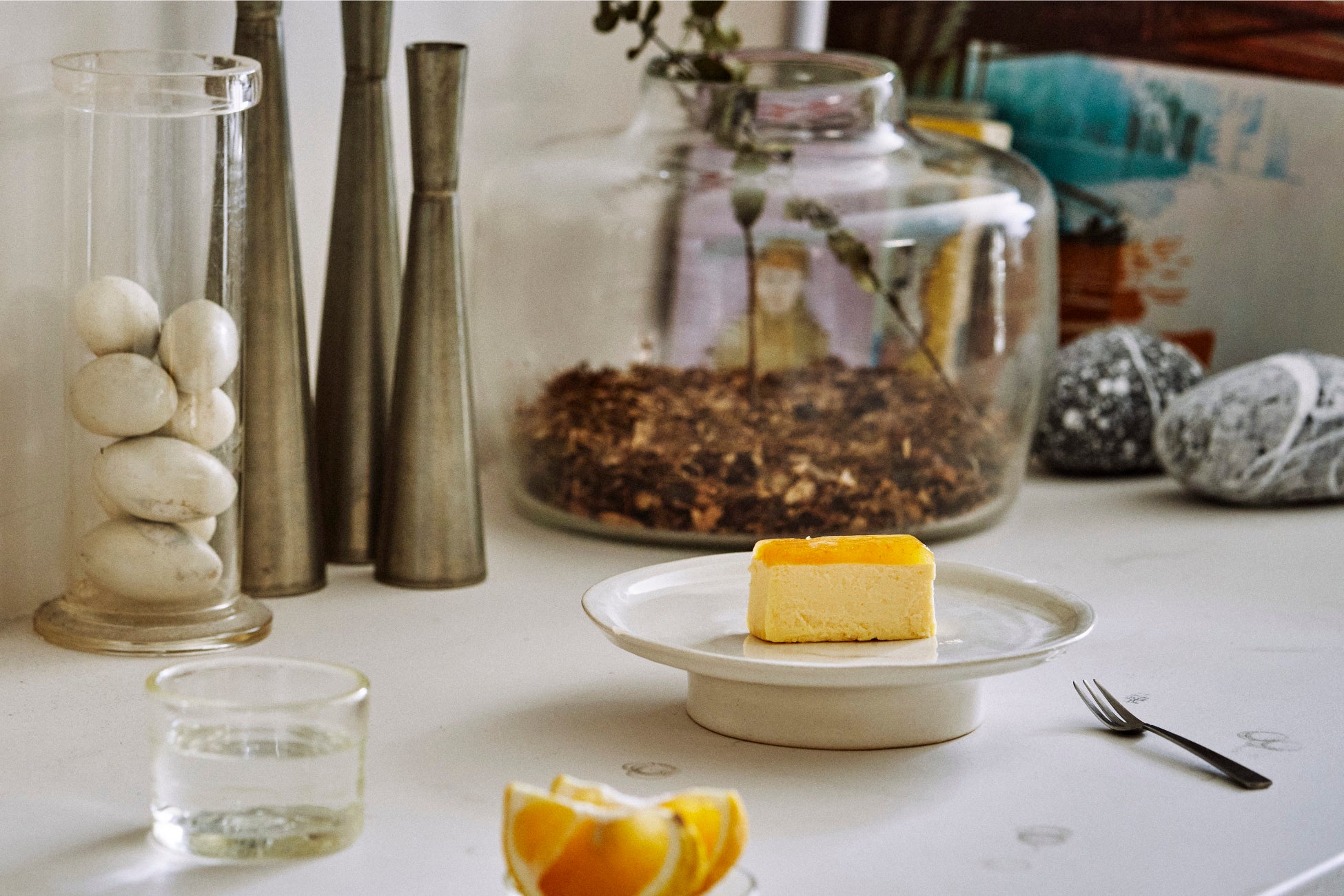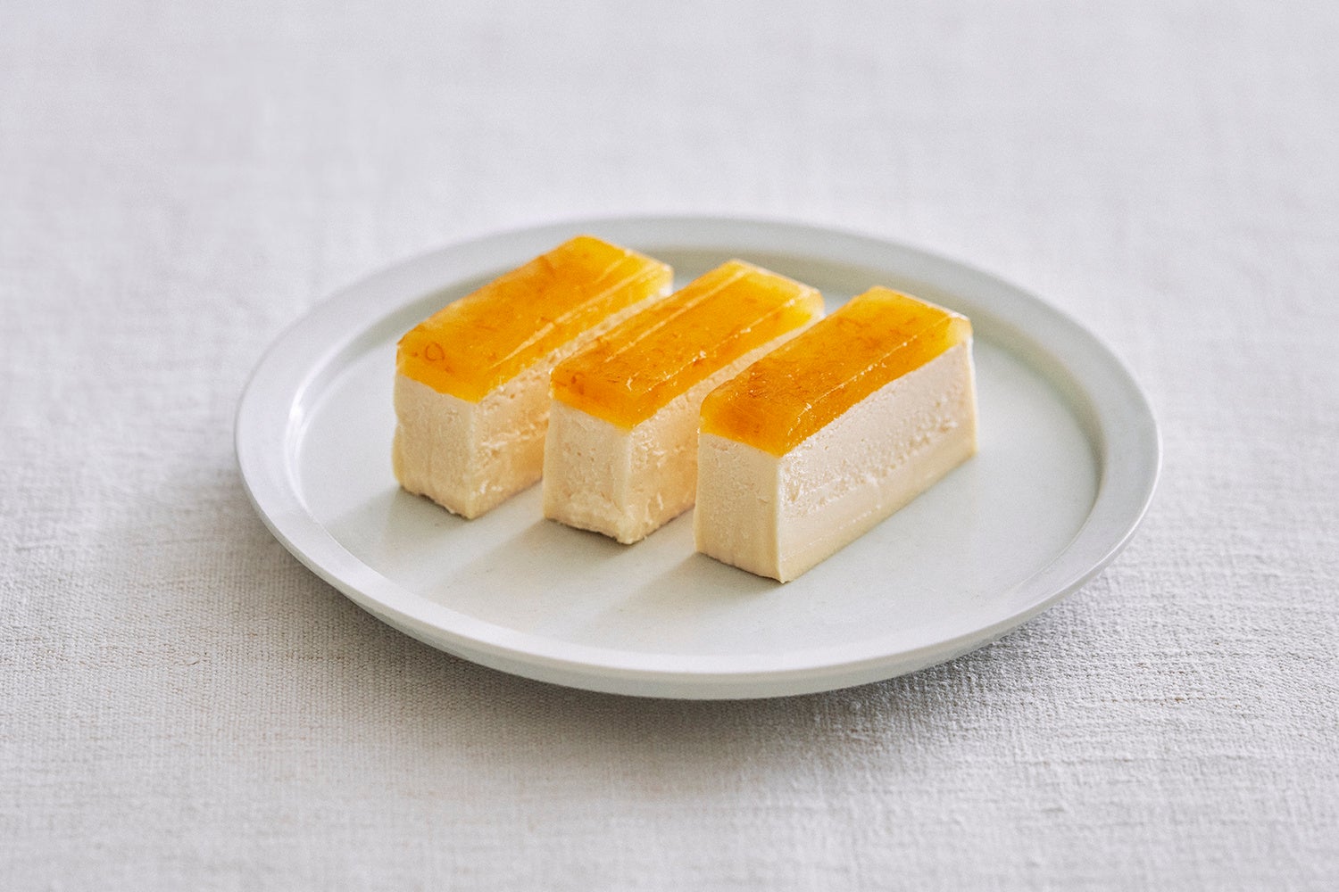 <紀州の山で採れたほろ苦い甘夏と爽やかなハーブのジュレ、チーズのまろやかさが口の中でひとつに溶ける、グルテンフリーのすっきり新感覚スイーツ>
