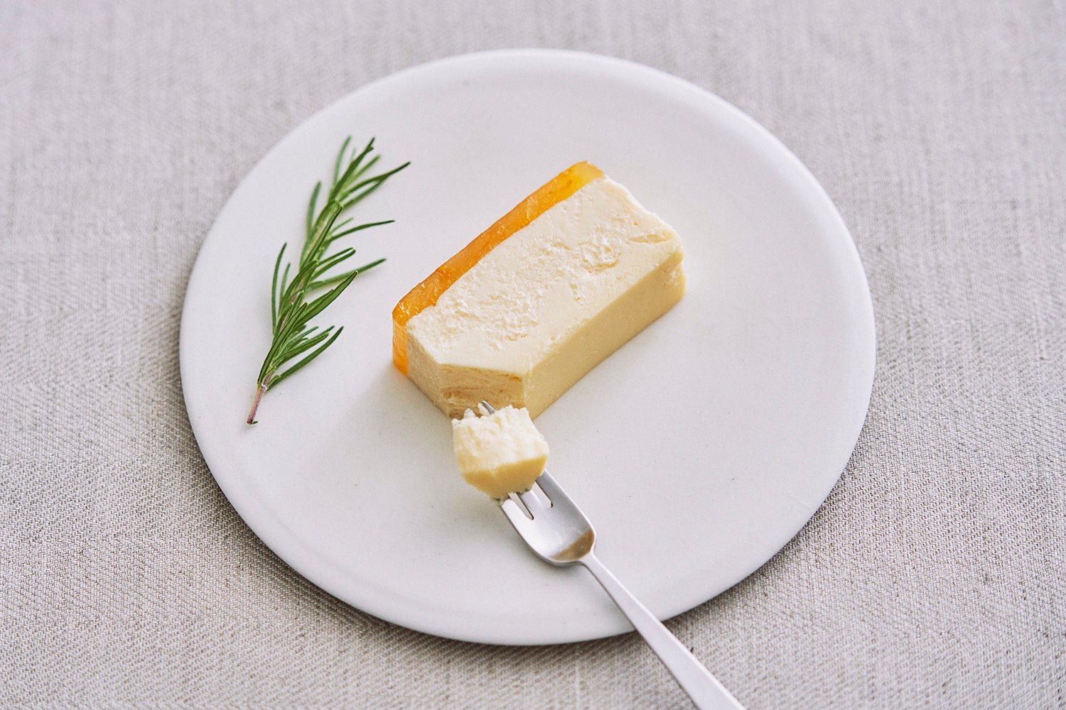 ◇北海道産のクリームチーズをふんだんに使用した、濃厚なチーズテリーヌ◇和歌山・有田で大地に優しい農法で育てたほろ苦い甘夏と爽やかなハーブのジュレ