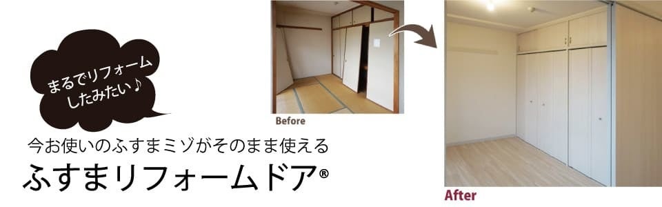 今お使いの襖(ふすま)や障子の枠(敷居)が工事なしで、そのままふすまリフォームドアやクローゼットに変えることができるためその手軽さやコストの低さから多くのお客さまにご利用いただいています。