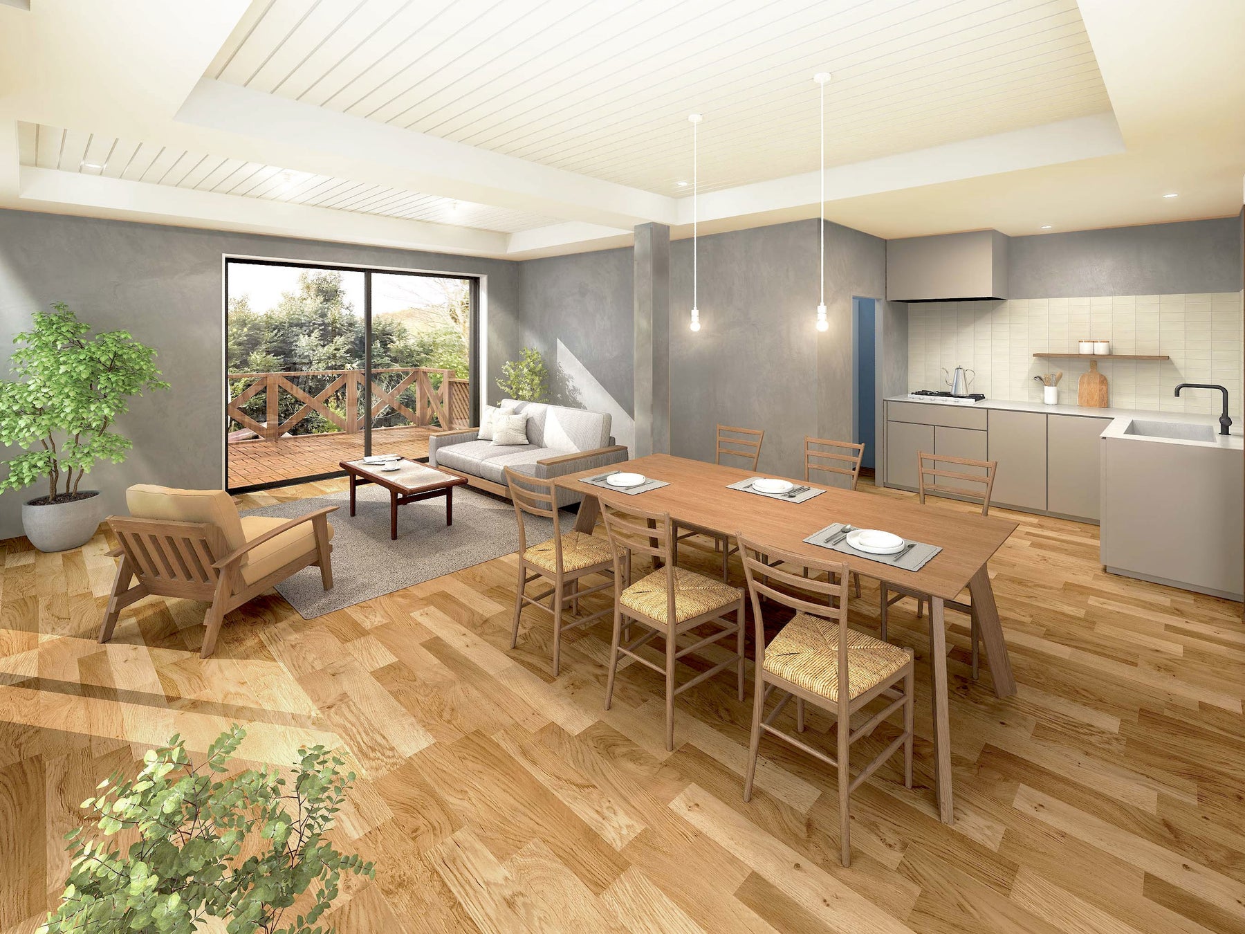 概要:室内65m²+テラス11m²+ガーデン400m² / 収容人数最大5名 / LDK+寝室×2