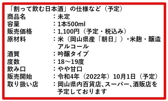 【白菊酒造】新商品「割って飲む日本酒」製造にご支援を! クラウドファンディングサービス「晴れ!フレ!岡山」で募集開始 5月30日まで
