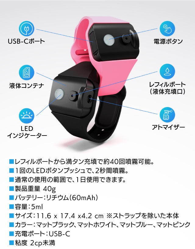 超軽量 リストバンド型ディスペンサー『Spraycare』がMakuakeで先行予約受付中!気になる場所にワンプッシュで安心を