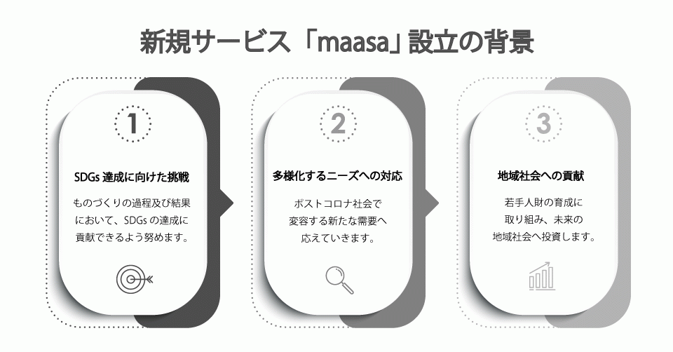 テストマーケティング期間に研究開発を進めてきた製品を順次リリースしていきます。また、その他にもmaasa事業を通じて達成したい上述の3つの要素を推進するため、いくつかの取り組みを行っていく予定です。