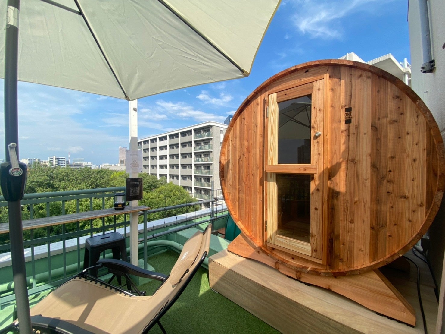 アウトドアサウナとして人気の高い、バレルサウナが大阪市内の屋上で利用できます。貸切のため家族や友人同士など気兼ねなくサウナを楽しんでいただけます。