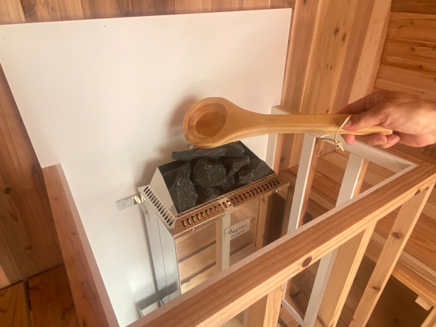 貸切のため、周りに気を使うことなく自分のタイミングでロウリュをしていただくことができます。