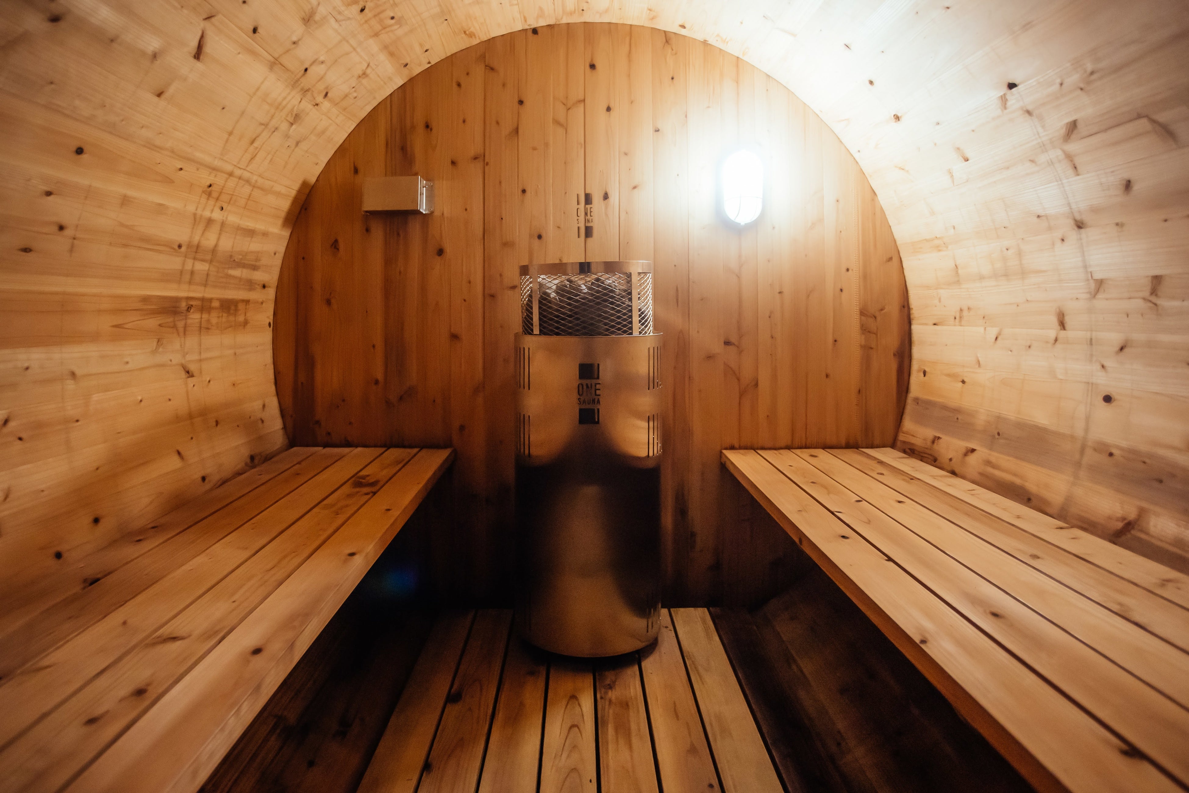 円柱型のおしゃれなフォルムでみているだけでもととのいそうなサウナです。