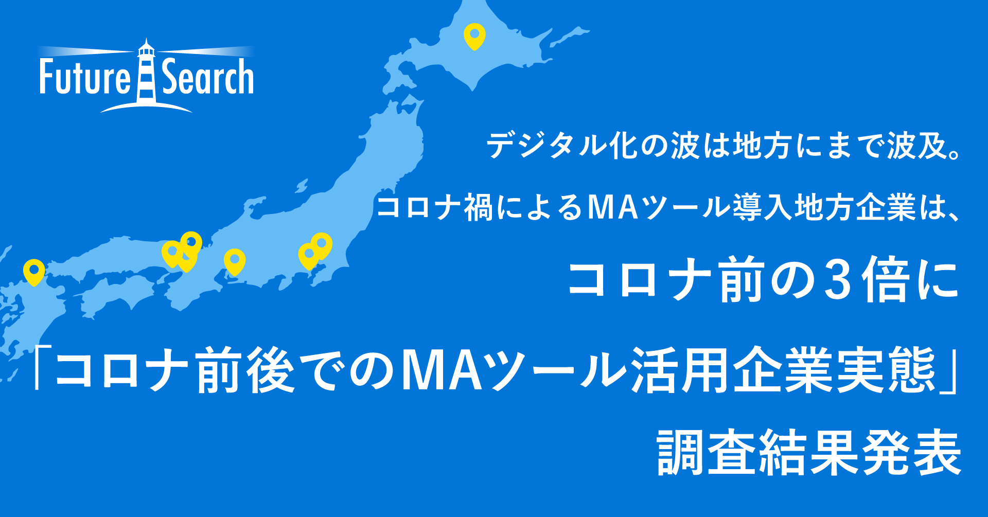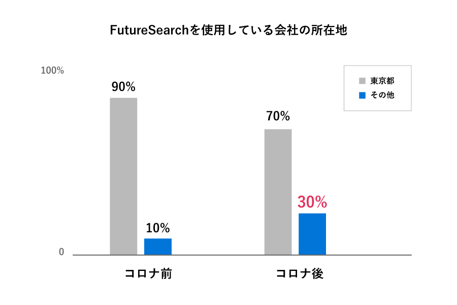 コロナ禍を境にテレワークが進み、訪問営業に変わる新たなアプローチ⼿法が求められるようになり、MAツール「FutureSearch」を使用している地方企業は、コロナ前の3倍と大幅に増加しました。