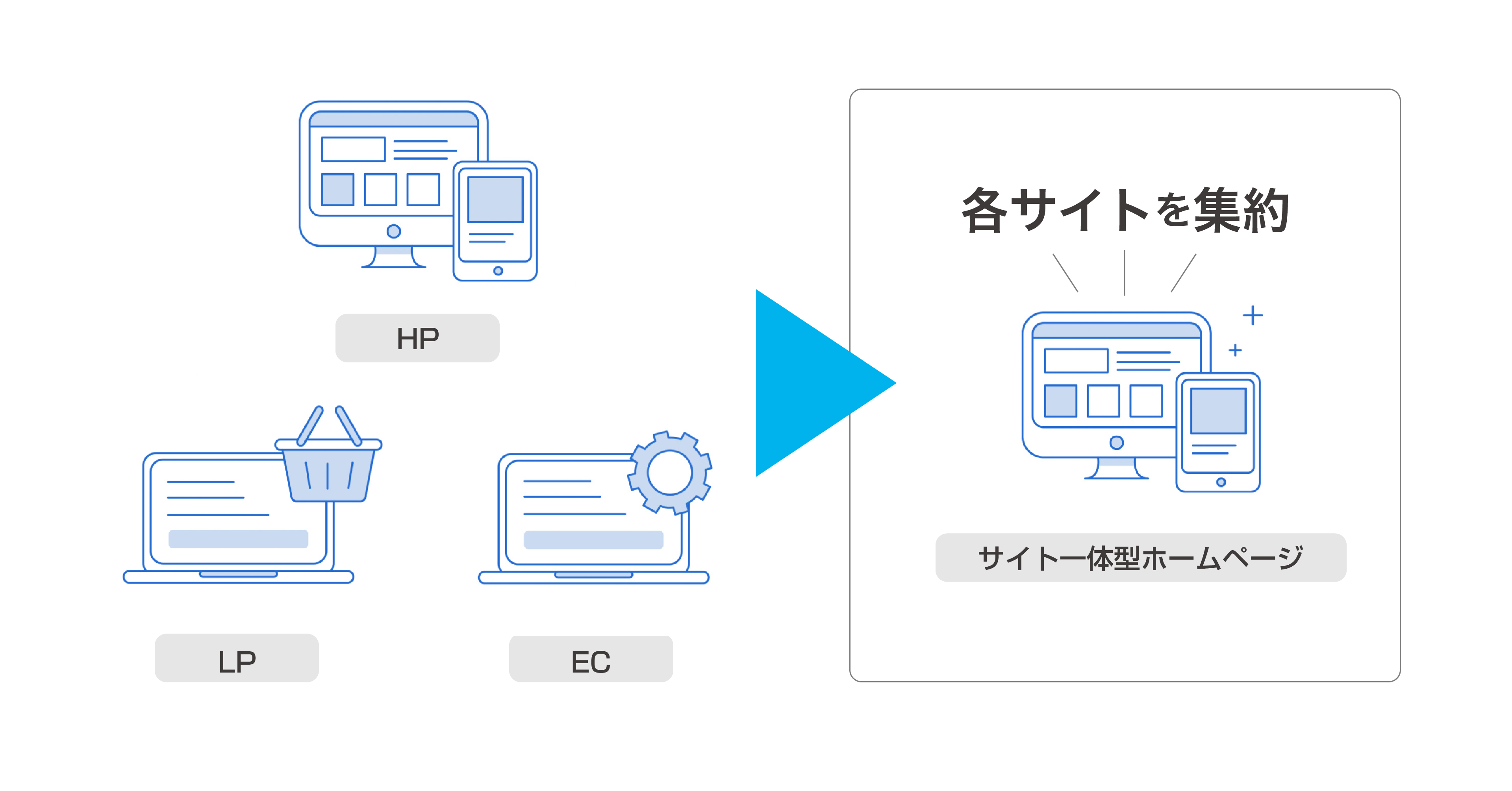 企業さまのコスト削減を実現すことを第一に考え生まれたのが「サイト一体型ホームページ」です。