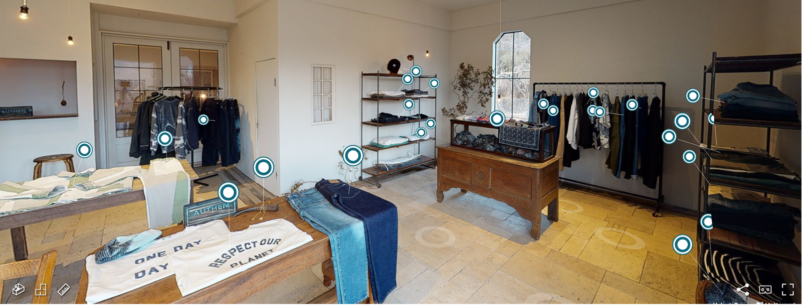 ブランドローンチとあわせて公開された公式サイトには、AUTHENファーストコレクションの購入、一点物のアップサイクルアイテムの購入、古着の後染めサービスがそれぞれ利用できる仮想空間上のバーチャルストアを設置。HMDを利用したフルVRだけでなく、携帯やPCからの利用が可能です。