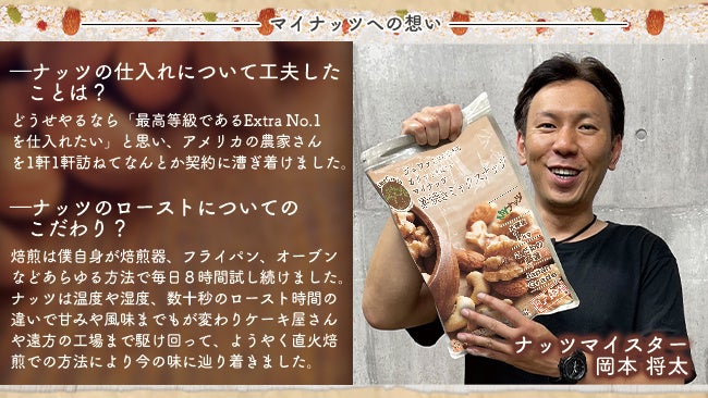今後もお客様にご満足いただけるよう、「1粒1粒こだわった」ナッツをお届けしたいと思います。