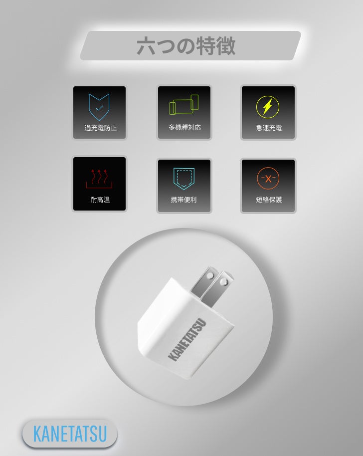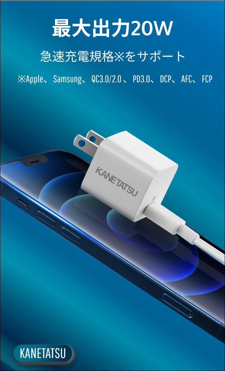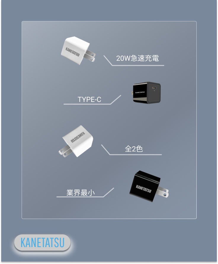 ■KANETATSU製の20W対応PDタイプ充電器の特徴
