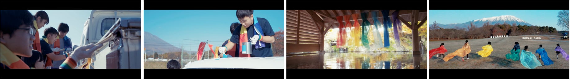 町民の方々が自ら出演し、虹色のクロスを手に地元のスキー場を滑走する様子や、「軽トラ市発祥の地」として、軽トラ市で使用するトラックをペンキで虹色に装飾するシーン、虹色に配色されたジェラートなど、地元のあらゆる魅力を虹色を用いて紹介しています。