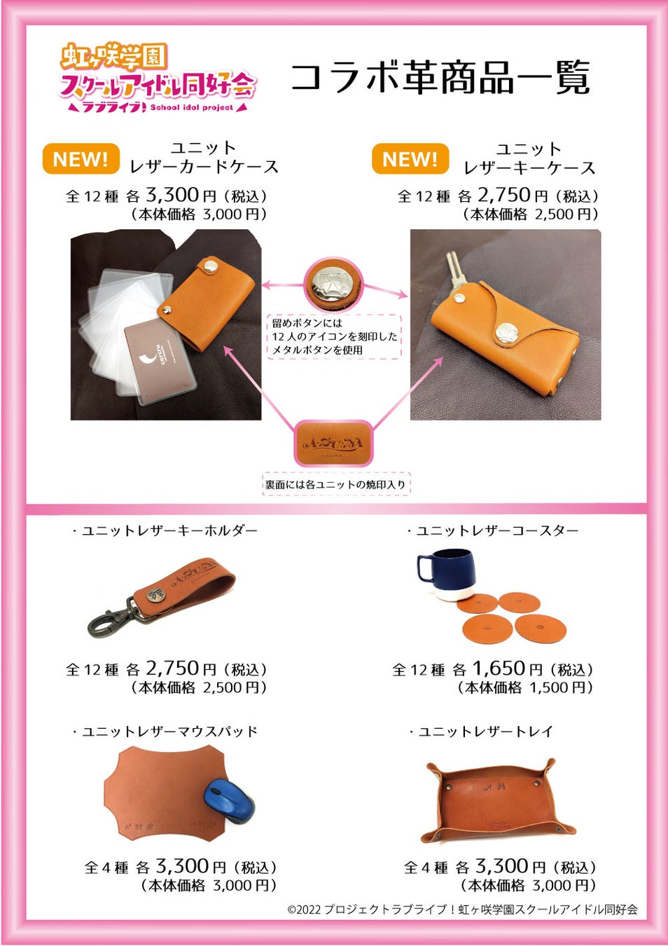 - 「ラブライブ!虹ヶ咲学園スクールアイドル同好会」コラボオーダーメイドレザーグッズ概要