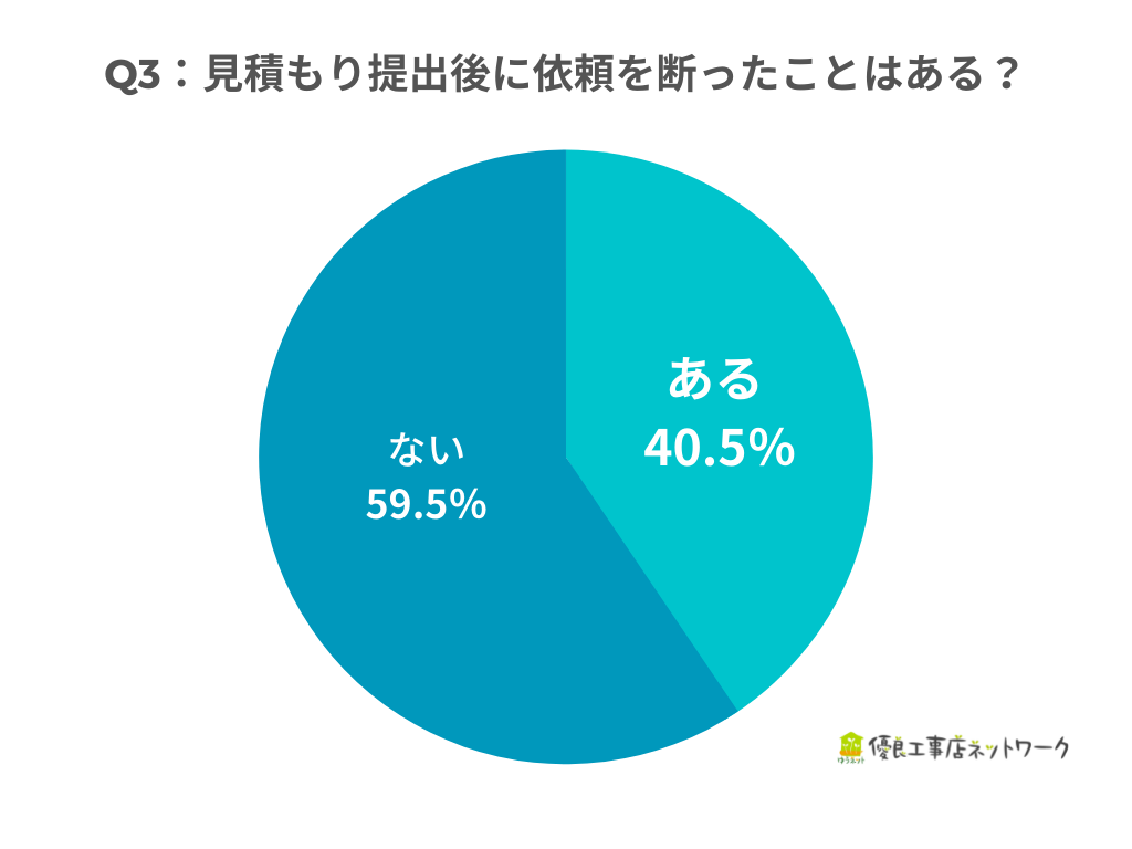「見積もり提出後に依頼をお断りしたことはありますか?」という質問には、4割以上が「ある」と回答。