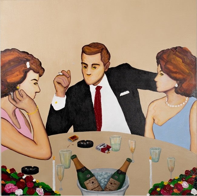 作品中に散りばめられたモチーフ、フラットな空間に描かれる”状況”、一つ一つが記憶や価値観と結びつき、流れ込んでくるような「感覚」と「世界観」を鑑賞者にもたらします。鮮やかな色彩を纏いながら、空想と逃避に潜む新しい景色と解釈をそっと静かに提示する彼の作品からは単純なノスタルジィではなく、説明不能で衝動的なリアリティを感じていただけるのではないでしょうか。