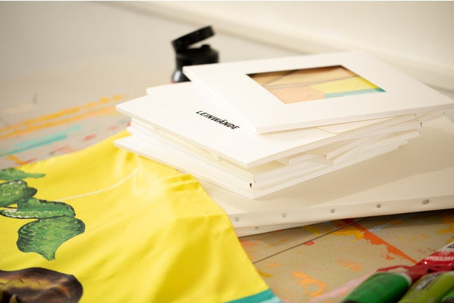 LEINWANDE(https://leinwande.com)とのコラボレーションとして、今回の展示のメイン作品となる「escapism from ordinary」を使用し、Furoshiki Scarfを制作しました。作品を身に纏うことも、部屋に飾ることもできる新しいスタイルを提案するコラボとなりました。店頭にて数量限定で販売いたします。なお会期中は、同時期・同フロアでLEINWANDEの22SS POPUPも開催されます。