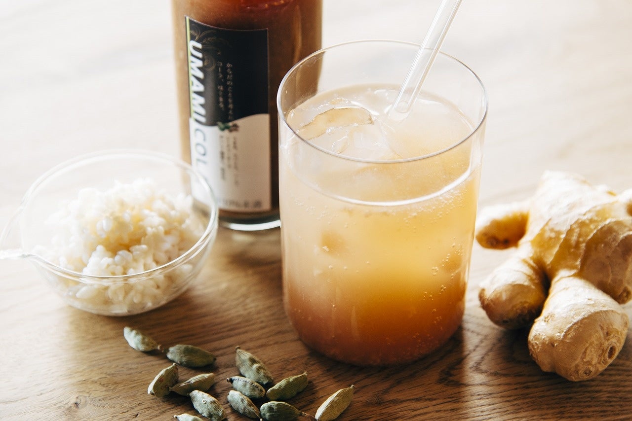 米麹だけで作った甘酒をベースに西洋東洋の様々なスパイス、ハーブ、柑橘類から作られるクラフトコーラ。トゥルシーやエルダーフラワー等ハーブやスパイスを10種程ブレンドし、沖縄県産のシークヮーサーを皮ごと絞って入れています。