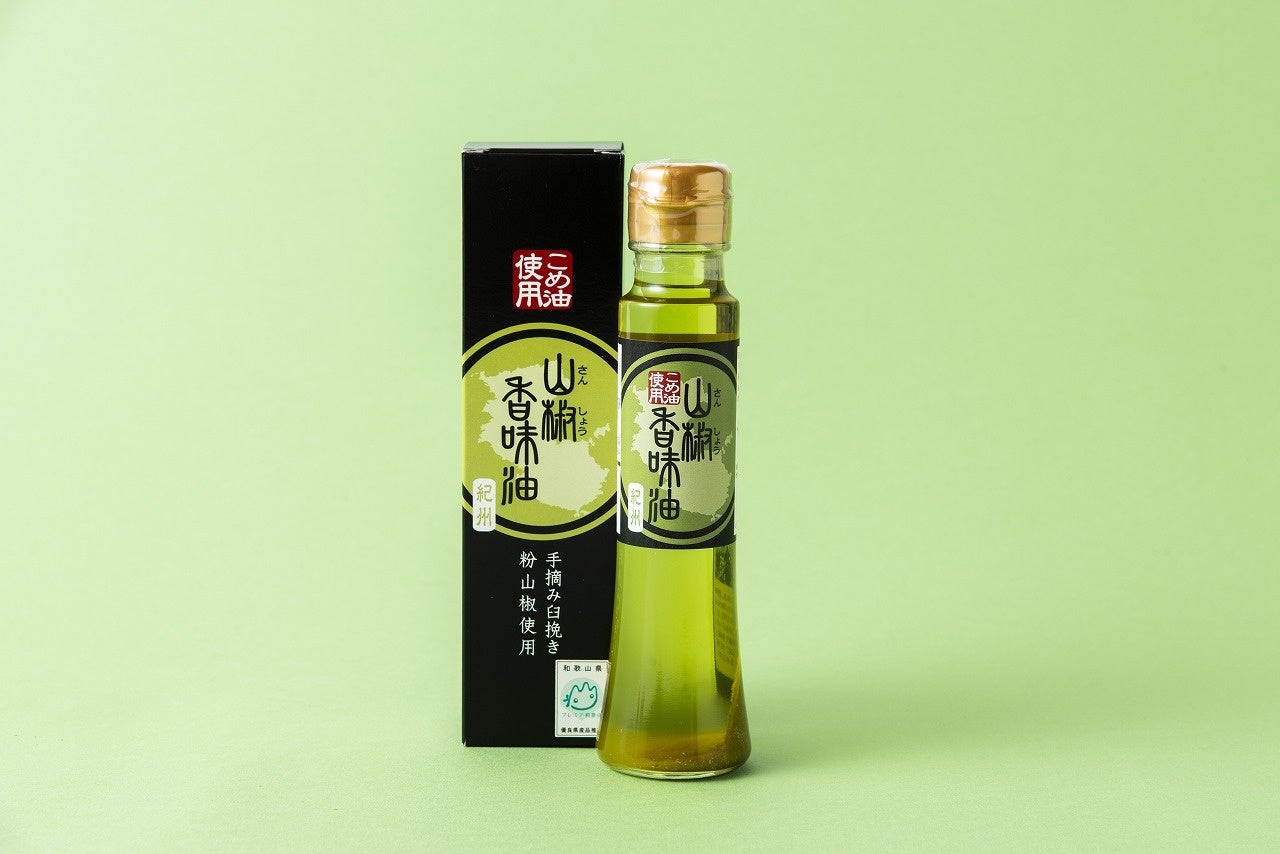 和歌山で生産が盛んなフルーティーで甘い香りが特徴の「ぶどう山椒」を使用。ぶどう山椒を丁寧に臼で挽いた、採れたての山椒の芳醇な香りを、クセのないこめ油に封じ込めました。香りと程よい刺激が口の中に広がります。 魚料理、お肉料理、パスタの風味付け等、様々な料理にご使用ください。