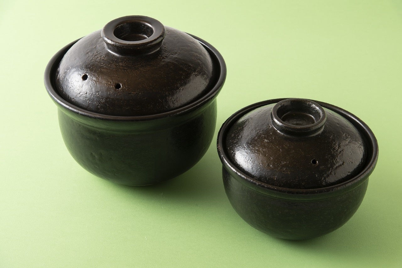 約10分火にかけて、10分置くだけで美味しいごはんが簡単に炊ける、AKOMEYA TOKYOオリジナルの有田焼黒釉土鍋。2枚蓋で吹きこぼれず、失敗しにくい構造。炊き込みご飯も、つやつやの粒立ちの良い仕上がりに。