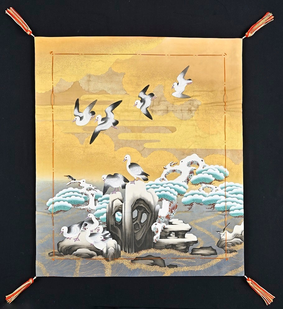 細辻家所蔵 袱紗「雪汀⽔禽図」