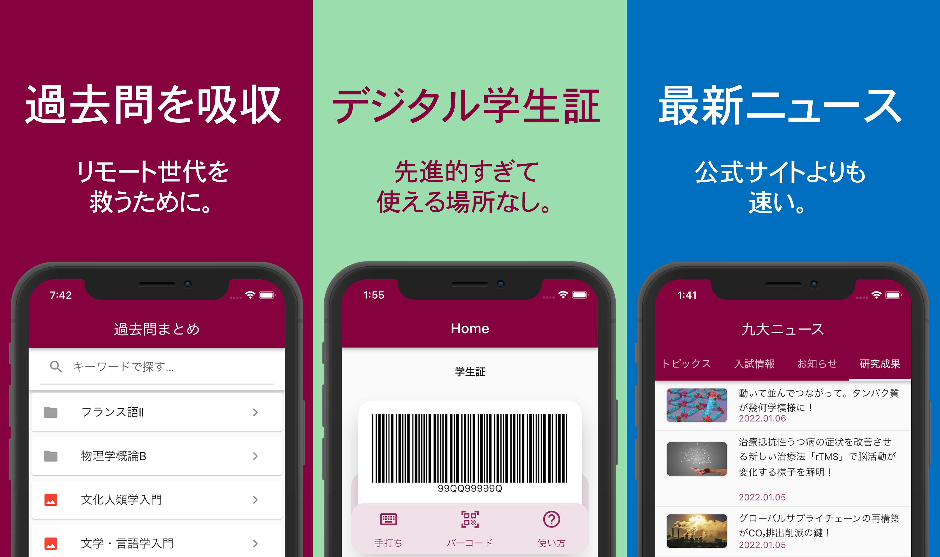 コロナ禍の大学生によって制作され非公式アプリがSNSでバズった結果、九州大学人口の25%のインストール数を獲得、更には星5レビューが160件を超えるなど、数多くの成果を残しました。