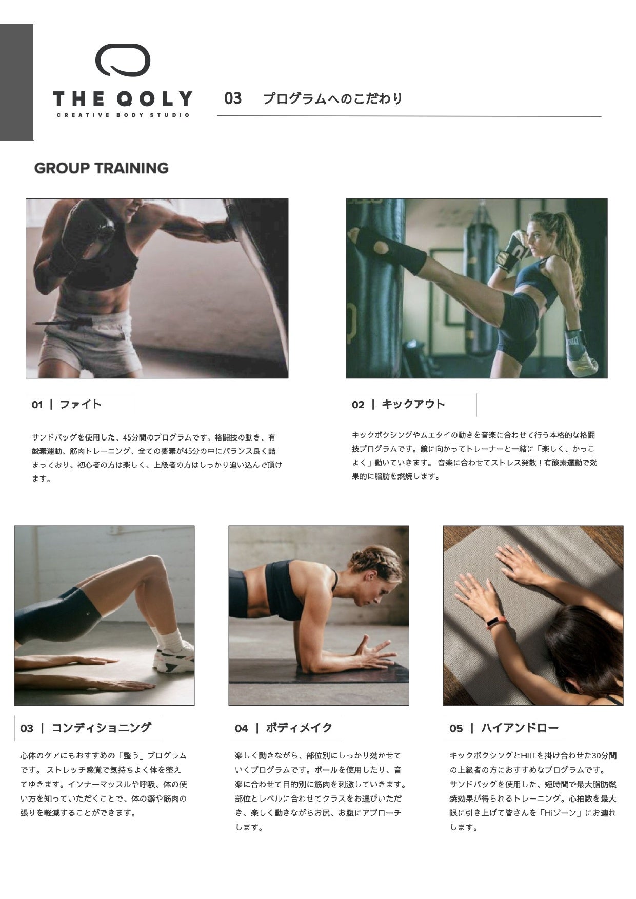 THE QOLYはHIITとボクシングを掛け合わせたクリエイティブボディスタジオです。心も体も引き締めてかっこよく、綺麗な女性になりたい。そんな自分に屈しない女性たちをサポートしていきます。